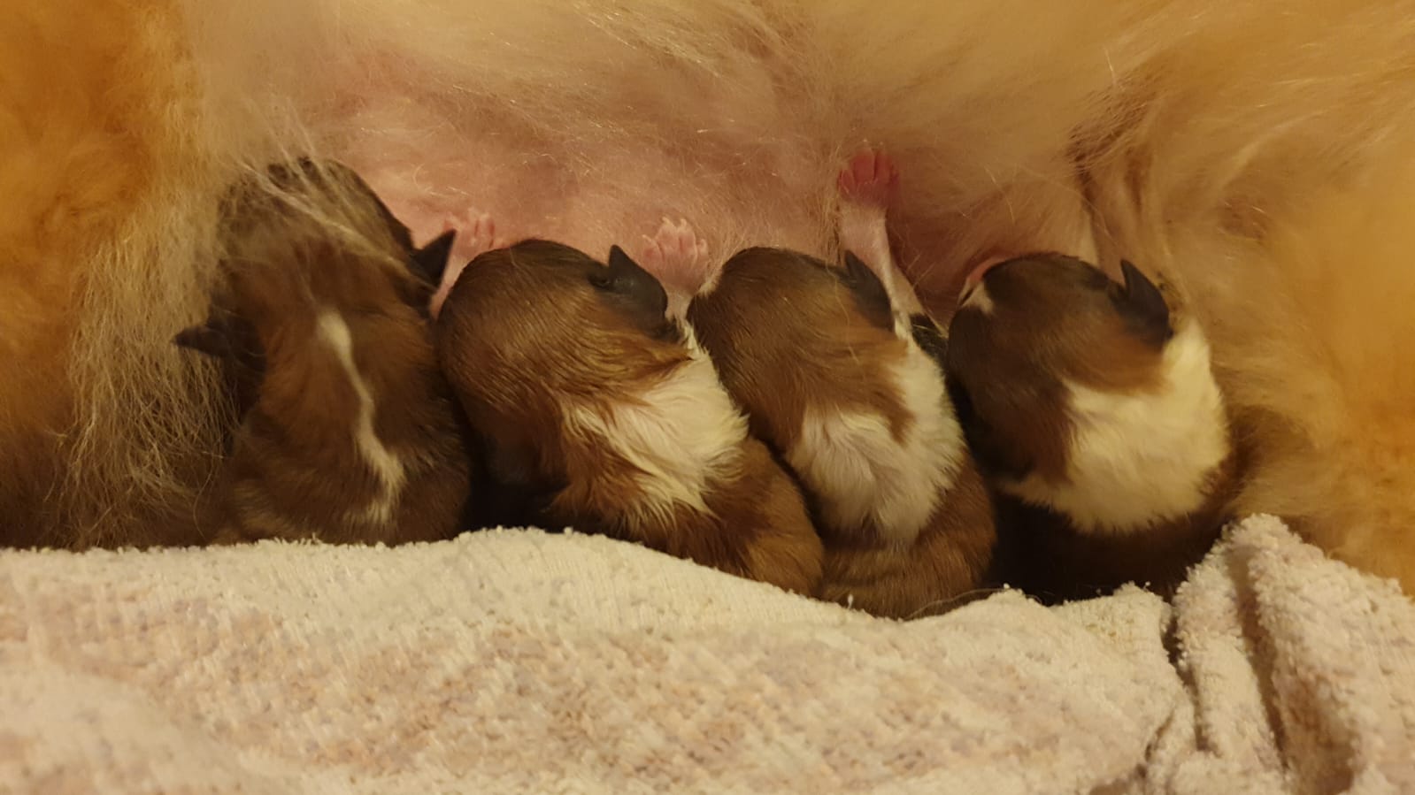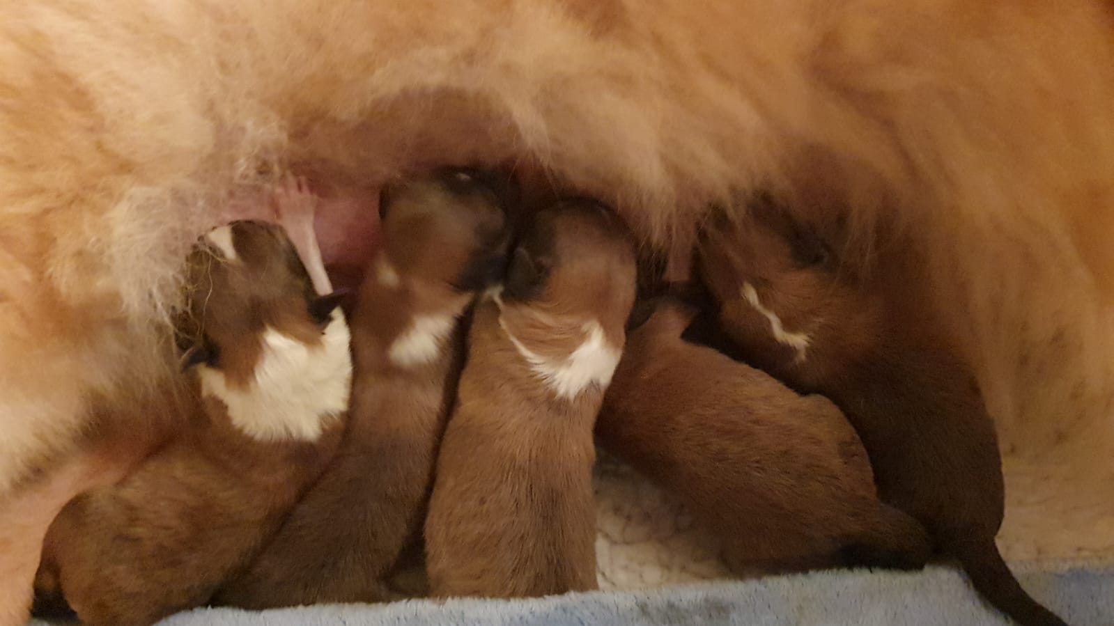 Hündin geb. 18.09.24 - 23:20 - gew. 190 gr. Rüde geb. 18.09.24 - 23:30 - gew. 165 gr. Rüde geb. 19.09.24 - 00:20 - gew. 180 gr. Rüde geb. 19.09.24 - 01:00 - gew. 240 gr. Hündin geb. 19.09.24 - 01:40 - gew. 160 gr. |