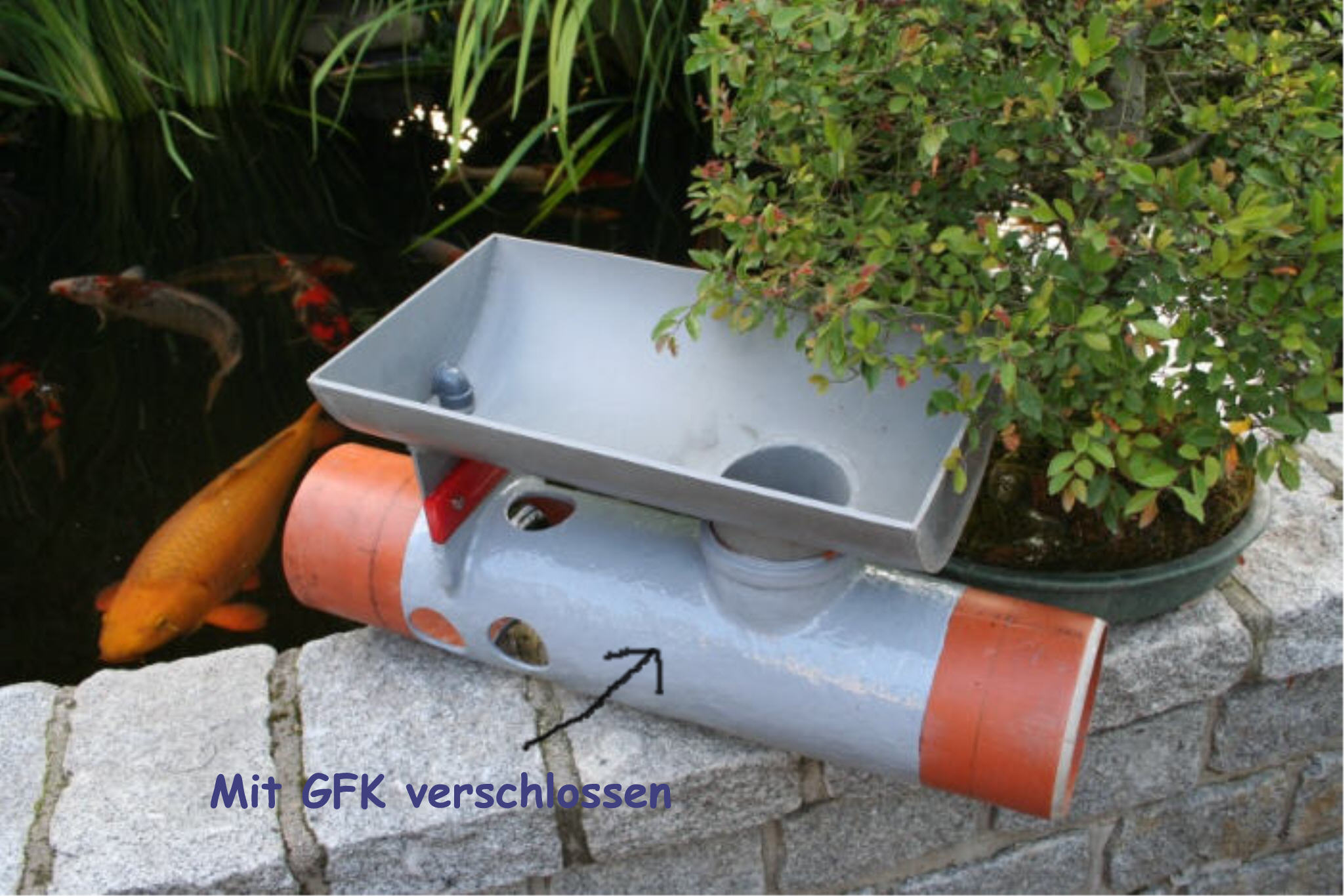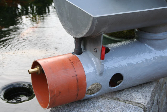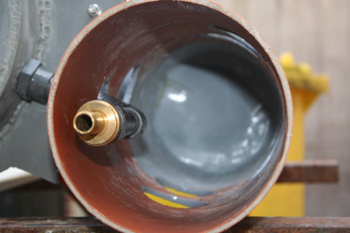 Die Schmutzablaufseite in 150 er KG-Rohr |
