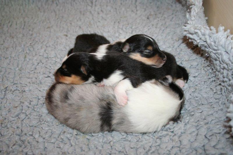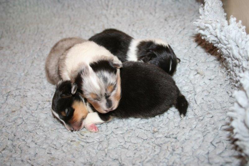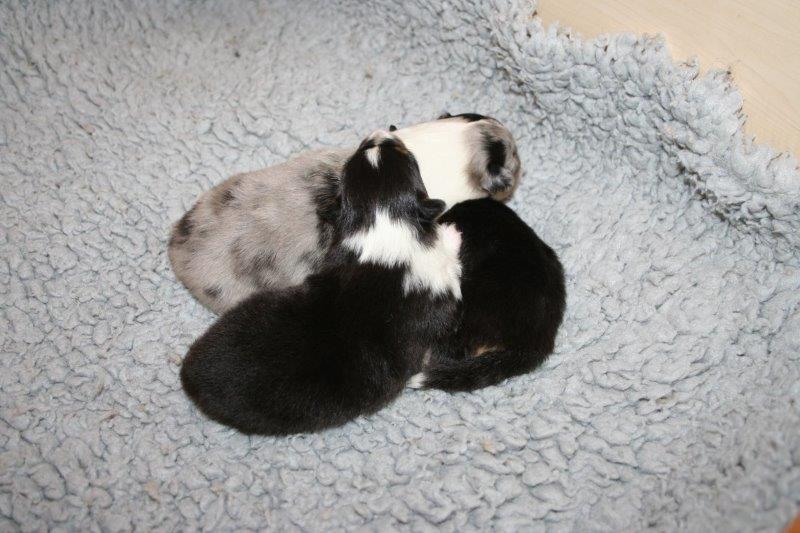 Hündin geb. 10.11.18 - 23:05 Uhr - gew. 161 gr. tricolor Hündin geb. 10.11.18 - 23:25 Uhr - gew. 224 gr. blue merle Hündin geb. 11.11.18 - 00:30 Uhr - gew. 207 gr. tricolor
