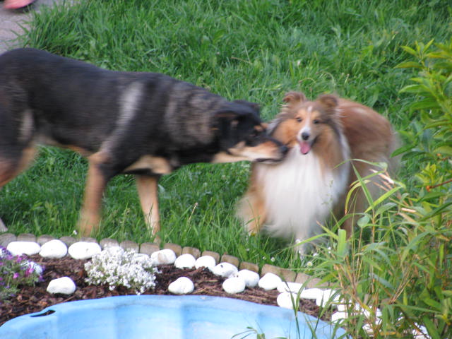 Und auch Percy kann wieder mit den Nachbarhunden im Garten spielen und
