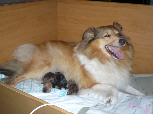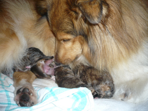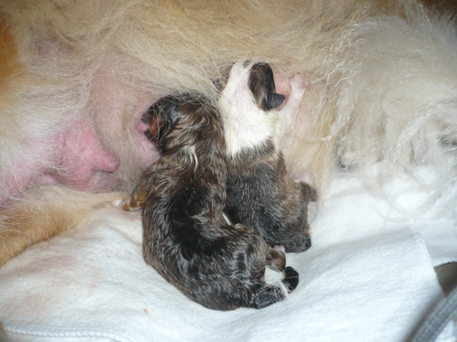 Josie mit ihren Babys, die gerade 1 Tag alt sind |