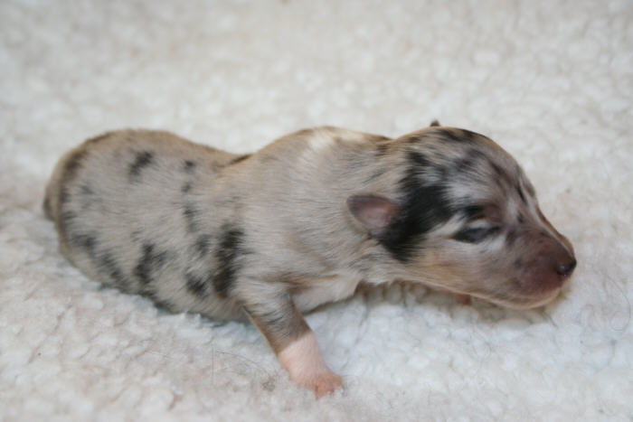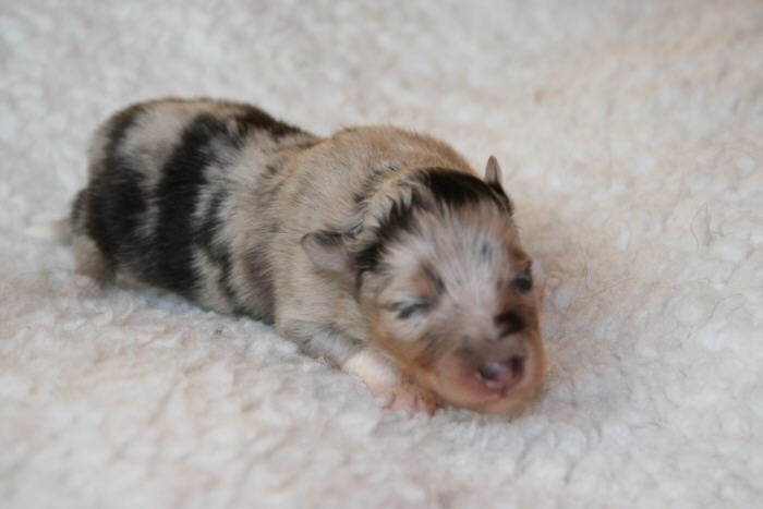 Welpen 8 Tage alt 2 blue-merle Hündinnen 3 blue-merle Rüden 1 tric. Hündin