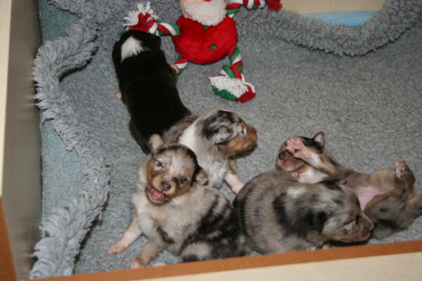 Welpen 17 Tage alt 2 blue-merle Hündinnen 3 blue-merle Rüden 1 tric. Hündin