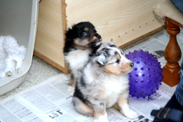 Welpen 36 Tage alt 2 blue-merle Hündinnen 3 blue-merle Rüden 1 tric. Hündin