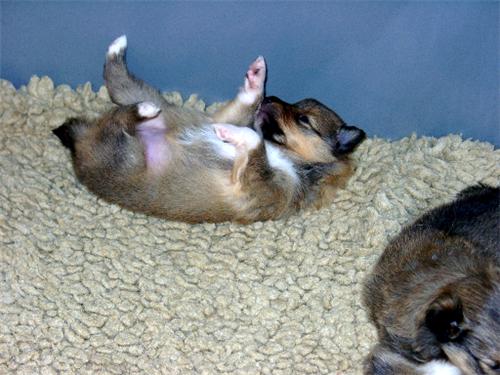I-Wurf M: Mary Poppins o´the Highlands V: Dustin vom Erkelenzer Land . Welpen 26 Tage alt |