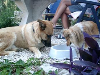 Unsere "dreisten Drei" mit Lucky, dem Hund des Vermieters!